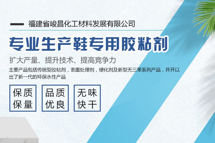 福建省峻昌化工材料發(fā)展有限公司總部設(shè)在中國(guó)鞋鄉(xiāng)——晉江。為更好、更方便服務(wù)廣大客戶,我司在廣東江門(mén)及福建均設(shè)有先進(jìn)的PU膠生產(chǎn)基地,歡迎廣大同行前來(lái)我司灌裝或批發(fā)銷售。公司是一家中外合資,面向亞太地區(qū)從事研究,生產(chǎn)銷售鞋用粘膠10多年的專業(yè)公司。從國(guó)外引進(jìn)生產(chǎn)能力為數(shù)萬(wàn)噸的全套先進(jìn)生產(chǎn),檢驗(yàn)設(shè)備,與德國(guó)Bayer,日本DENKA及美國(guó),西班牙等其它海外公司有著密切的原材料及技術(shù)合作。公司主要產(chǎn)品包括傳統(tǒng)型膠粘劑,表面處理劑,硬化劑及新型無(wú)三苯系列產(chǎn)品,并開(kāi)以出了新一代的環(huán)保水性產(chǎn)品。供應(yīng)國(guó)內(nèi)外鞋業(yè),手提箱包及建筑工程單位使用。公司始終保持產(chǎn)品的良好品質(zhì)及專業(yè)特性,并倍受廣大客戶好評(píng)。